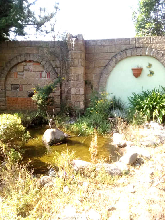 La propiedad está parcialmente bardeada y cuenta con un hermoso acueducto que funciona como fuente decorativa.